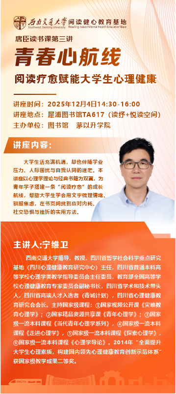 唐臣读书课第三讲 青春心航线 阅读疗愈赋能大学生心理健康 即将开课